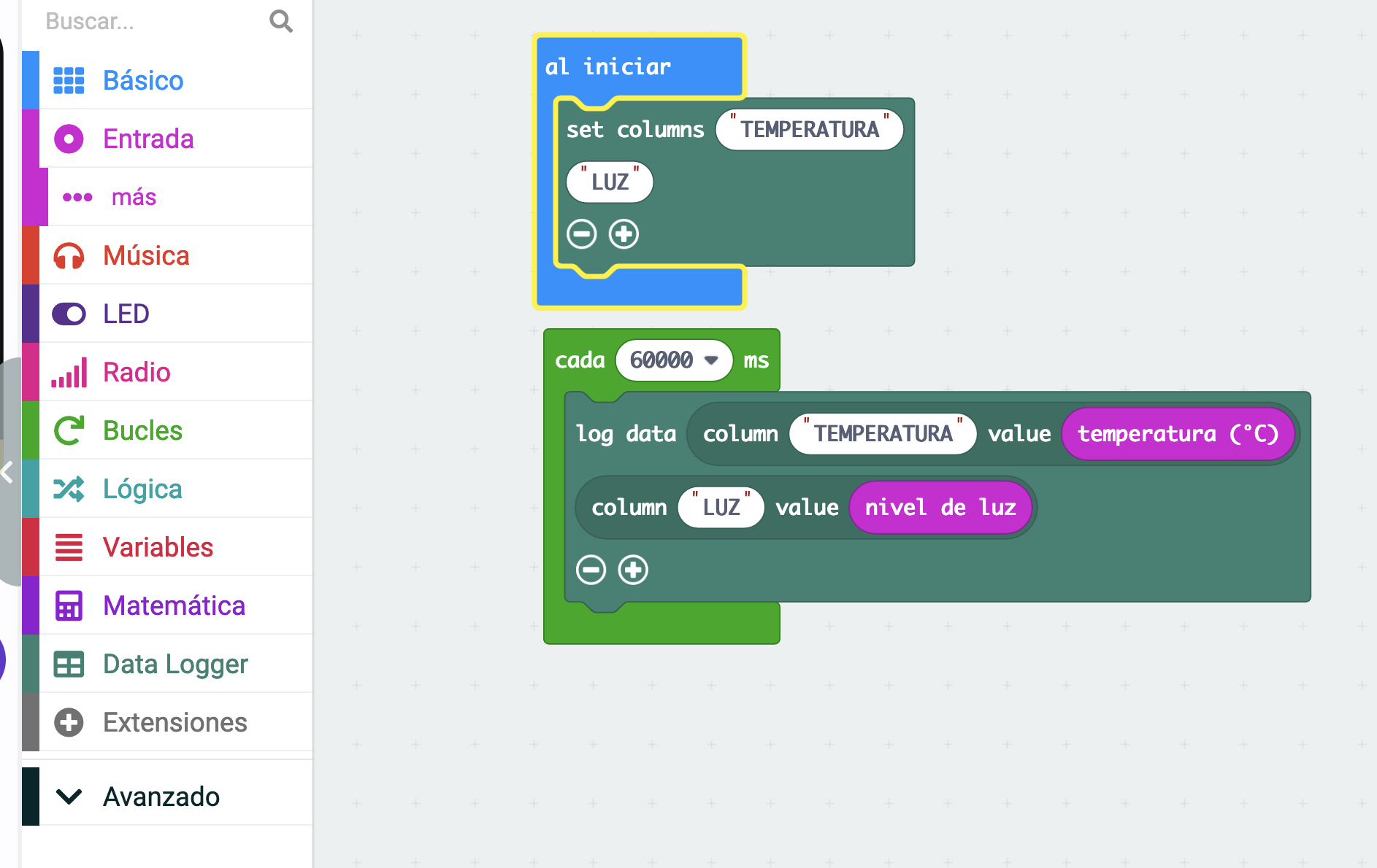 Podemos medir y almacenar datos en nuestra Micro:bit generando un fichero .csv que luego podremos tratar en nuestra hoja de cálculo.