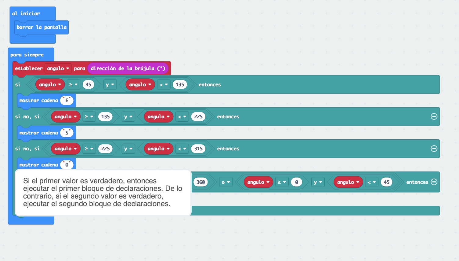 Tenemos que realizar un programa que permita a la microbit identificar el norte, sur, este y oeste.