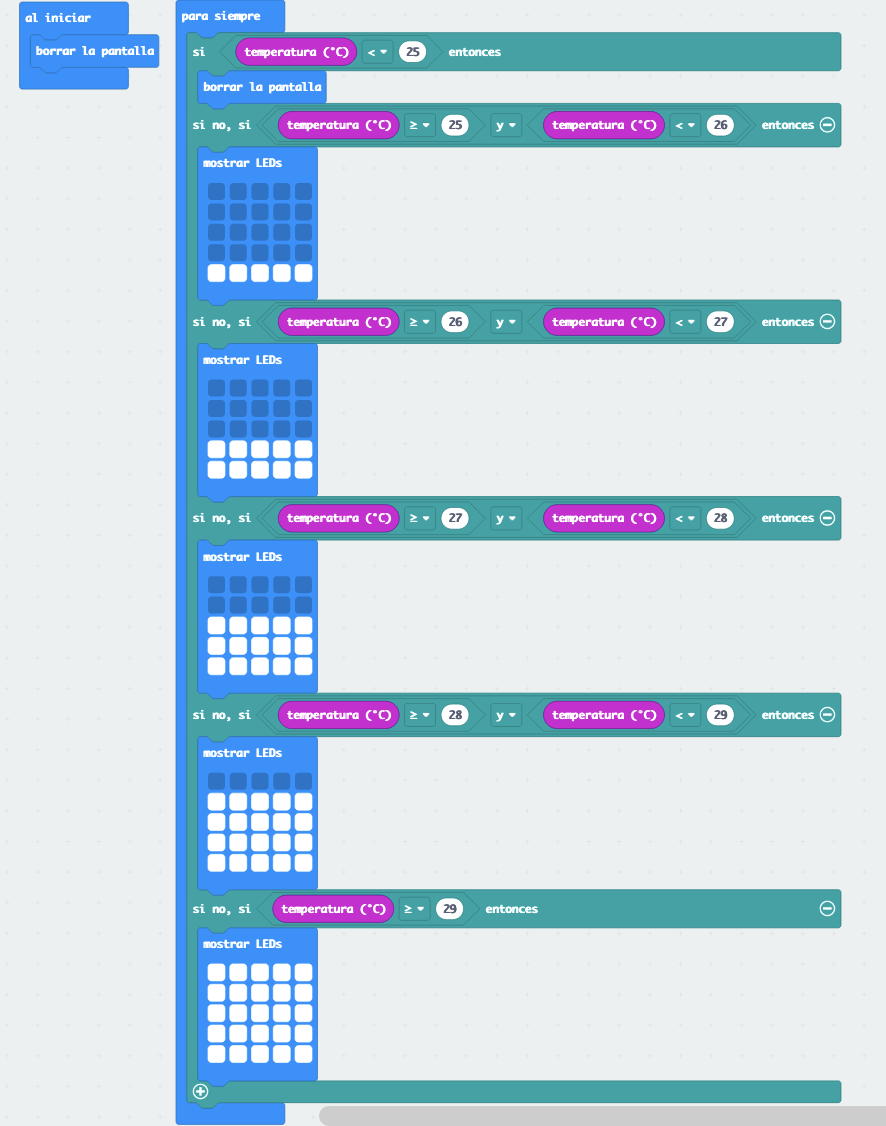 El reto consiste en mostrar mediante barras de led la temperatura entre un rango de 20 y 30 grados, en intervalos de 2 grados.